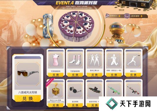 活动4:吃鸡派对屋,通过好运转盘收集蛋糕碎片,集齐8个碎片可以合同1个8周年蛋糕,消耗1个8周年可以兑换吃鸡派对屋中的任意1个奖励,奖励非常丰富,触乐喵喵套装,还有胜利之舞等动作,以及枪械皮肤和幸运G-Coin宝箱哟!