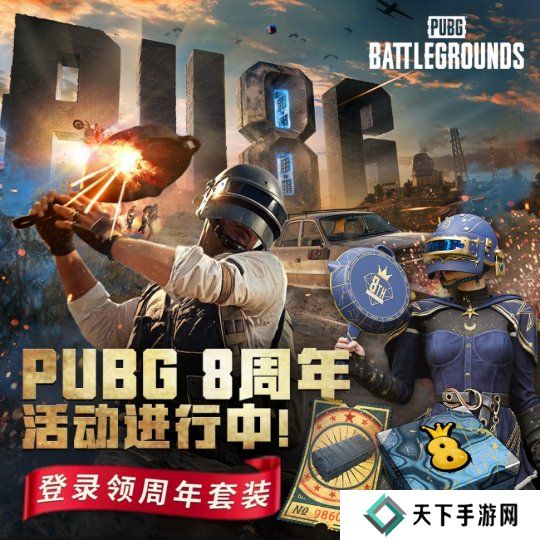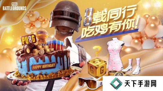 8载同行, 吃鸡有你,各位玩家们,感谢大家一直以来的陪伴,PUB**周年即将到来,我们将于3月13日上午10点至4月8日上午10点推出周年庆活动——“8载同行, 吃鸡有你”!一起来共庆PUBG的8周岁生日吧!
