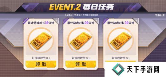 活动2:每日任务,活动期间完成每日的游戏时长任务可获得好运转转券,积累好运,提升实力!