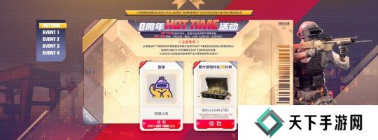 此次活动特别推出了8周年HOT TIME活动:3月23日19点~22点59分,登录游戏并完成累计游戏时长30分钟的任务,即可获得“防弹小鸡”及800G-Coin的奖励!