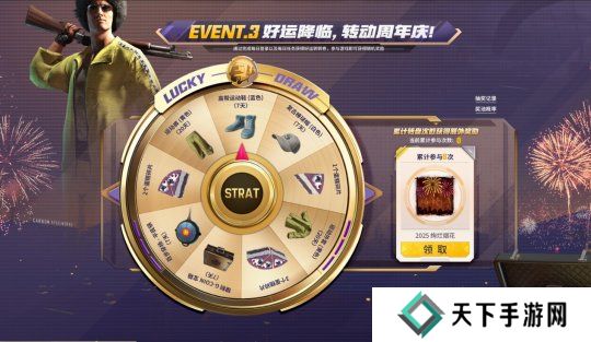 活动3:好运降临,转动周年庆!使用好运转转券参与抽奖,奖品除了8周年蛋糕碎片,还有限时百步穿杨平底锅、复古棒球帽(白色)运动外套(黄色)、运动裤(黄色)、高帮运动鞋(蓝色)及G-COIN等奖励哟!累计转盘抽奖8次还有庆典道具绚烂烟花!