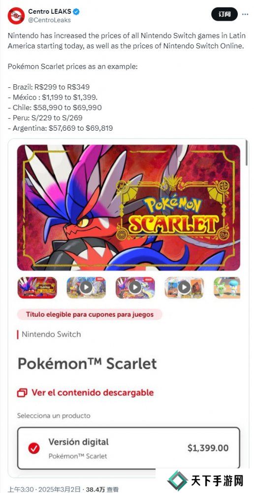 近两年来,提升游戏售价的呼声越来越高。许多业内厂商,都希望以这种方式来提升自身收益。但在此之前,关于提升游戏售价的讨论都集中在PC和主机游戏上。近期,推特用户CentroLeaks爆料Switch2的游戏售价,将提升到70美元。