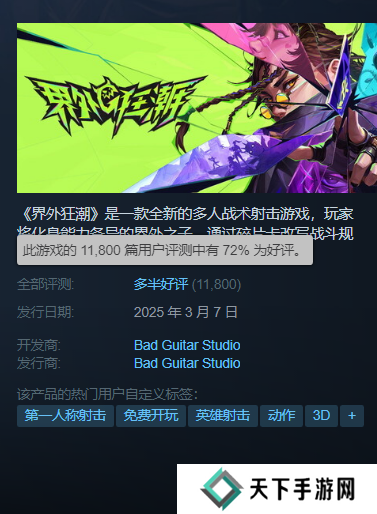 在超1w条用户评测中,《界外狂潮》收获了72%的好评率。