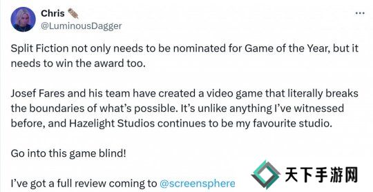网友表示,《双影奇境》不仅需要被提名为年度游戏,而且还需要赢得这个大奖: