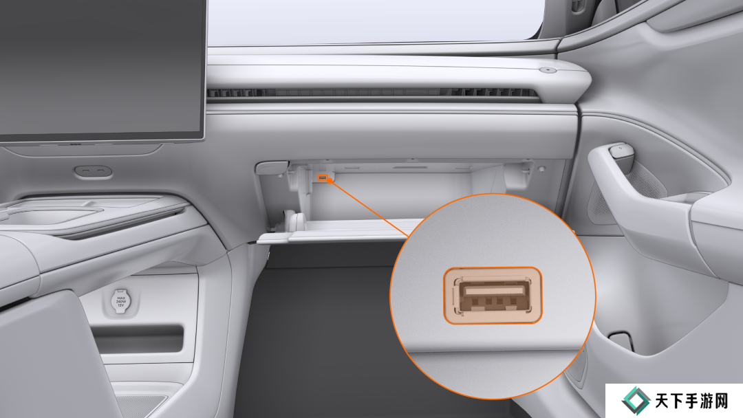 手套箱内设置有一个 USB 接口,用于连接哨兵模式和行车记录 U 盘,进行数据传输。
