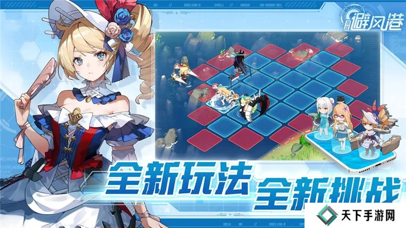 《苍蓝避风港》的核心玩法是战棋,玩家可以通过角色抽卡和装备制造来养成角色,控制海域逐渐扩大,通过海域中产出的资源和战斗中获得的资源来发展港区。