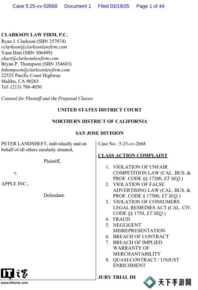 此次诉讼是在加州圣何塞联邦法院提起的,原告主张苹果应赔偿所有购买支持 Apple Intelligence 设备(包括 iPhone、iPad 和 Mac)的用户,并寻求法院确认集体诉讼资格。