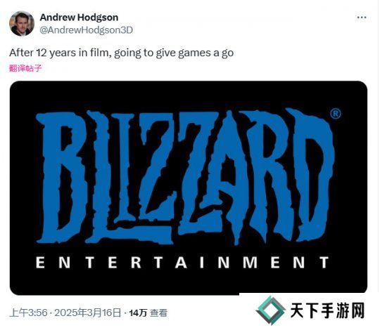 曾在电影行业工作了十多年的建模师Andrew Hodgson今日在其个人社交媒体上宣布,他已加盟暴雪娱乐,参与开发游戏项目。