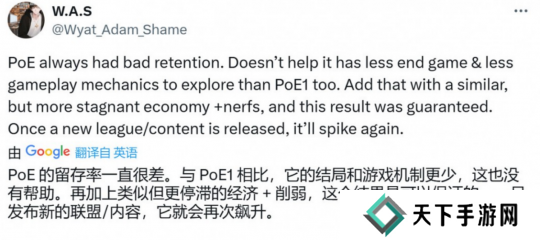 跟《暗黑破坏神》系列一样,《流放之路》系列非常仰赖内容的更新。在新赛季/新版本开始时,玩家人数是最多的。可随着游玩时间的提升,一些已经毕业的玩家自然而然就会降低游戏活跃度。因此玩家们看好版本更新后,玩家能够迎来回流。
