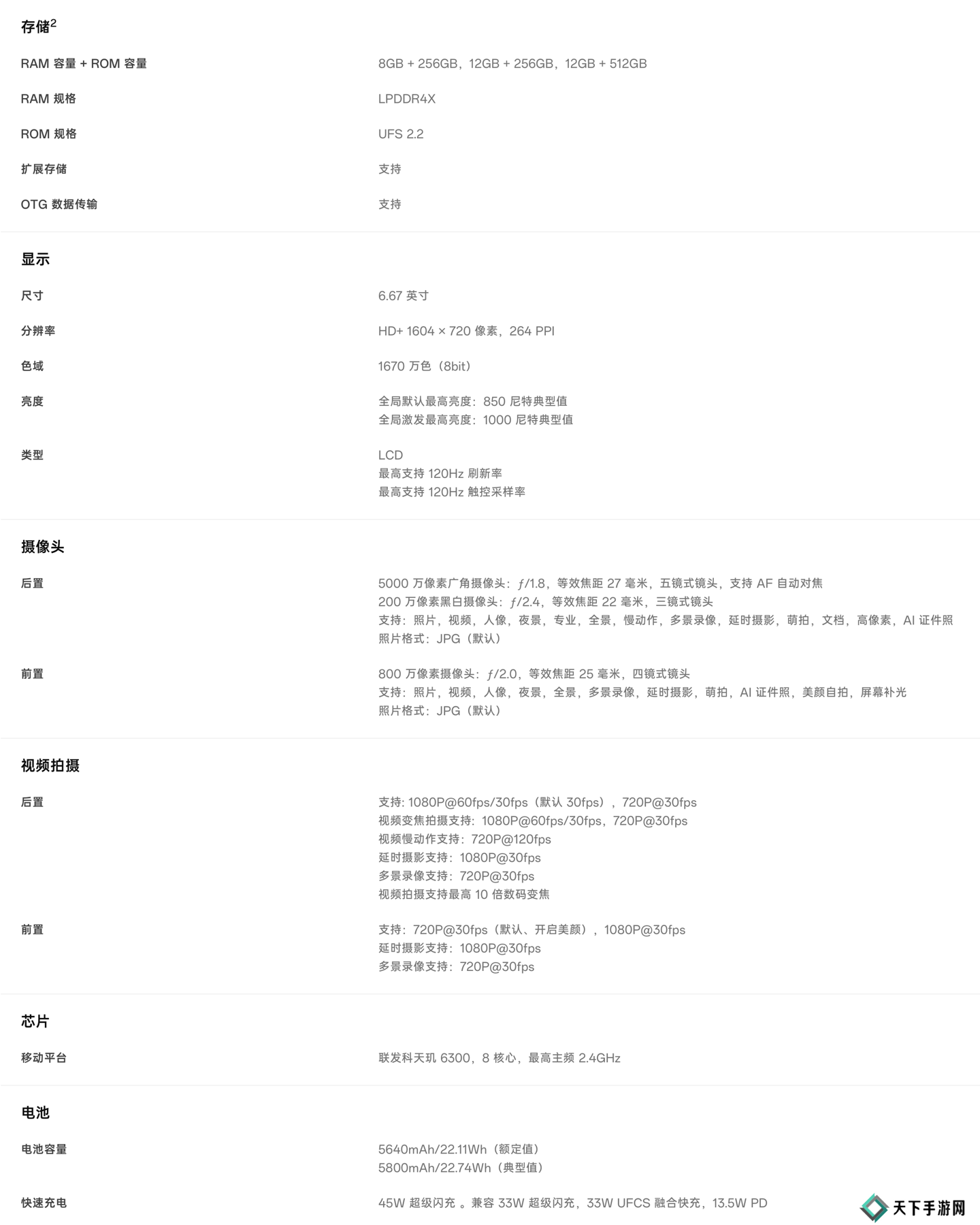 规格方面,该机使用联发科天玑6300处理器,搭载LPDDR4X RAM和UFS 2.2存储,内置5800mAh电池(支持45W超级闪充)。