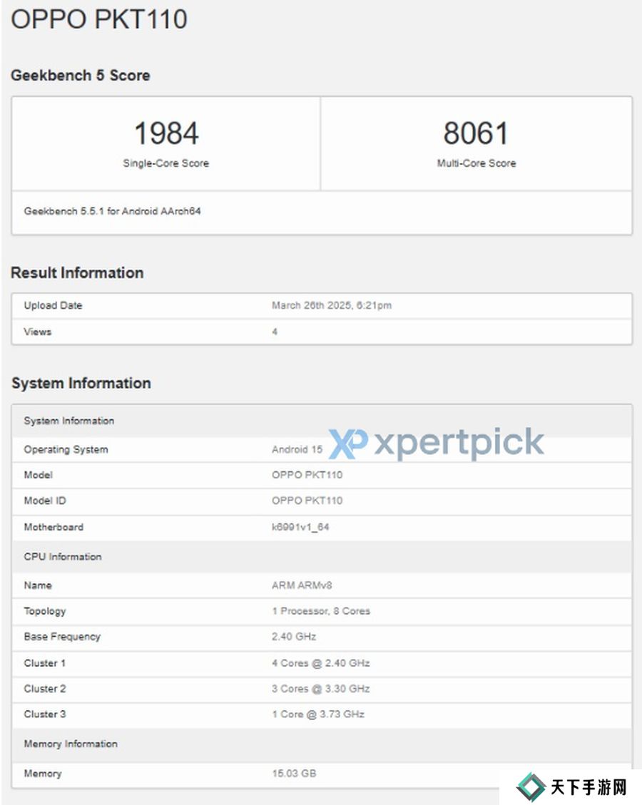 本站 3 月 27 日消息,科技媒体 xpertpick 昨日(3 月 26 日)发布博文,报道称型号为 PLB110 和 PKU110 的两款 OPPO 设备现身 GeekBench 跑分库,均显示搭载联发科天玑 9400+ 芯片。