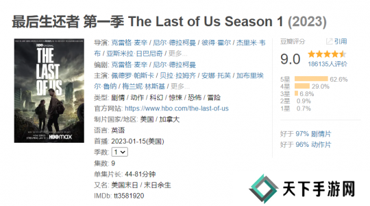 但很显然,HBO制作的《最后生还者》真人剧是个例外。这部2023年上线的剧集,通过对游戏内容的复刻、解构及进一步充实,收获了超高的评价。目前在豆瓣上,《最后生还者》依然有着9.0的高分,这还是在核心人物的选角不符合大家预期的情况下,所取得的成绩。
