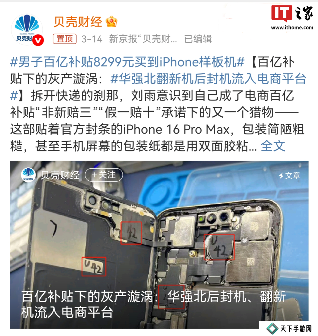 3 月 14 日,一则名为“男子百亿补贴 8299 元买到 iPhone 样板机”的词条登上热搜。