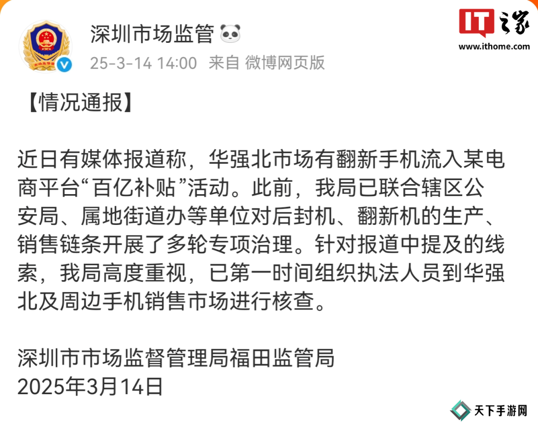 而就在 3 月 14 日,针对后封机翻新机乱象,@深圳市场监管 发布通报,称“已第一时间进行核查”。
