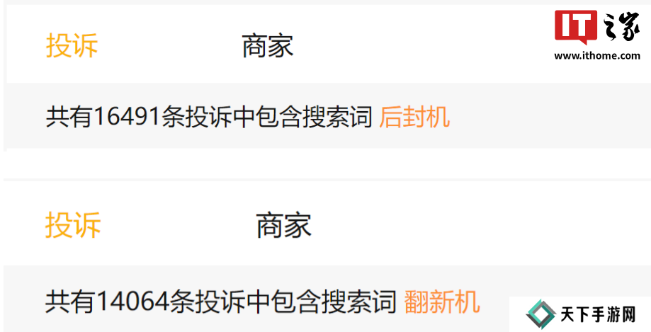 关于“后封机和翻新机”的问题,其实一直以来都存在,在某投诉网站上搜索一下,可以发现投诉多达上万条,有许多消费者都曾踩雷。