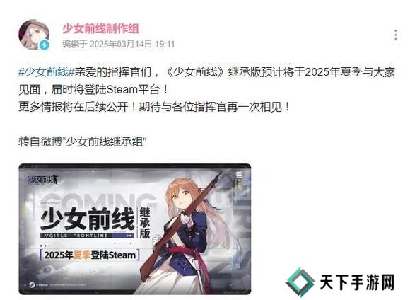 《少女前线》继承版将于2025年夏季正式上线,并且将以PC端版本的形式登陆Steam平台。