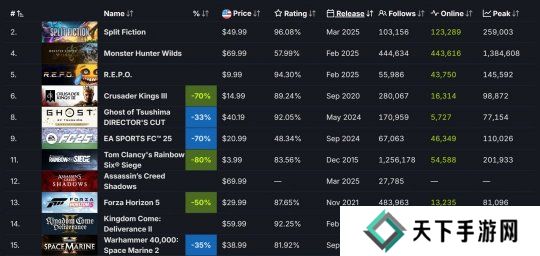 在Steam 上,《刺客信条:影》也已经是Steam上最畅销的游戏之一。根据SteamDB,过滤掉免费游戏部分,《刺客信条:影》目前排名第8。