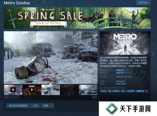 《地铁:逃离》于2019年2月发售,目前正在Steam春季促销中,原价148元,现降价75%,售价37元(史低价为14.8元),支持简体中文。该作获得玩家“特别好评”评价。